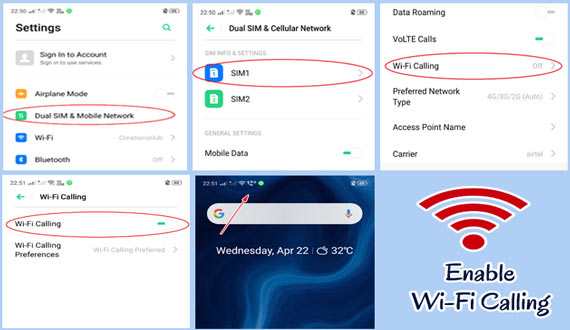 • Realme: Go to Settings > Dual SIM & Cellular Network > Select Operator > Turn on Wi-FI Calling